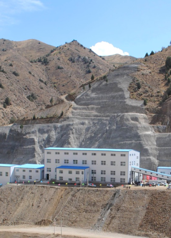 位于吉爾吉斯斯坦的富金礦業(yè)有限 公司(以下簡稱“富金公司”)是靈寶黃 金集團第一個收購、開發(fā)、建設的國外黃 金企業(yè)。為落實中吉兩國政府之間“資源 換項目”,2007年6月27日,富金公司在 吉爾吉斯斯坦由靈寶黃金股份有限公司、 中國路橋工程有限責任公司、新疆靈璽投 資有限公司三家股東合資成立,注冊資本 金為3330萬索姆。采用磨浮+炭漿吸附, 選礦規(guī)模為1500噸/日,年產(chǎn)黃金1噸。